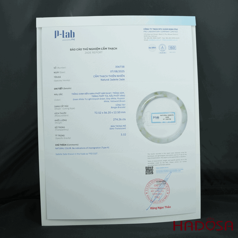 Các sản phẩm đá quý, đá phong thuỷ, bạc Thái của Hadosa đều có nguồn gốc xuất xứ rõ ràng, với giấy giám định từ các trung tâm kiểm định đá quý uy tín như PNJ, LIULAB, DOJI. Cam kết hoàn tiền gấp 10 lần nếu bán hàng không đúng như miêu tả.