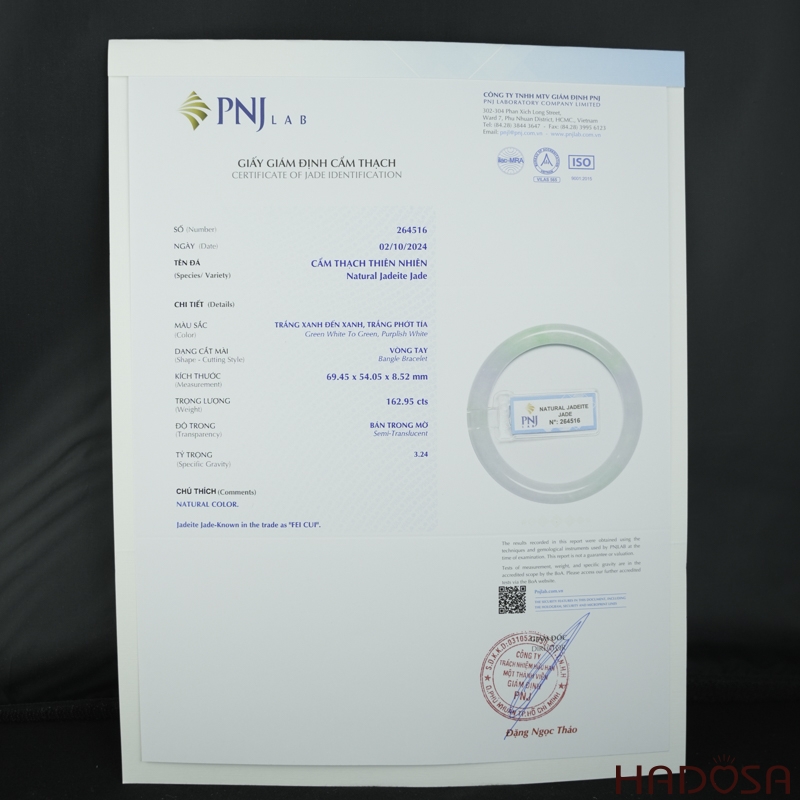 Các sản phẩm đá quý, đá phong thuỷ, bạc Thái của Hadosa đều có nguồn gốc xuất xứ rõ ràng, với giấy giám định từ các trung tâm kiểm định đá quý uy tín như PNJ, LIULAB, DOJI. Cam kết hoàn tiền gấp 10 lần nếu bán hàng không đúng như miêu tả.