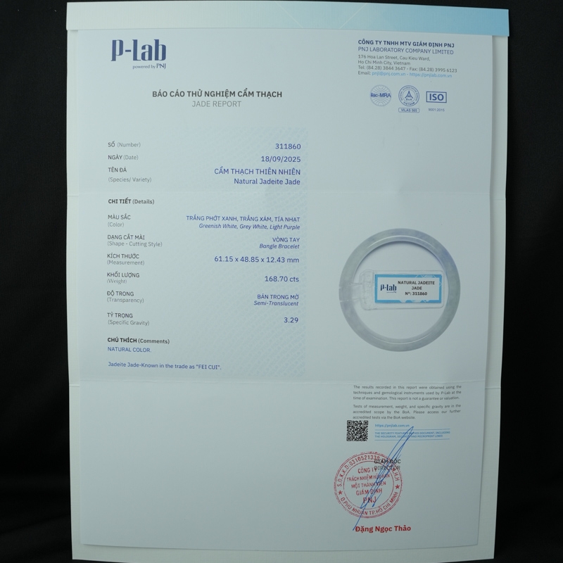 - Chất lượng đảm bảo đã được kiểm định bởi trung tâm giám định đá quý, mã số PNJ 311860