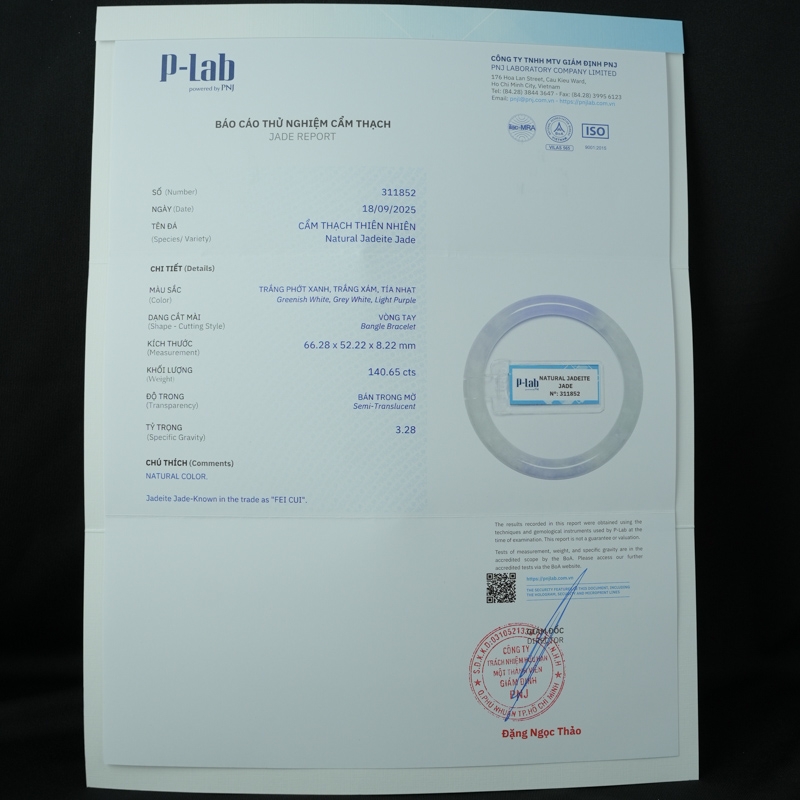- Chất lượng đảm bảo đã được kiểm định bởi trung tâm giám định đá quý, mã số PNJ 311852
