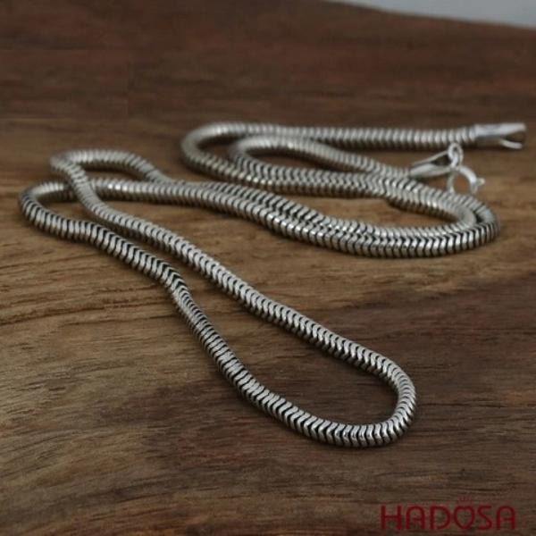 Đây là mẫu vòng cổ giá rẻ được nhiều anh em yêu thích và lựa chọn. Chất liệu làm bằng bạc Thái tốt cho sức khỏe và thu hút tài lộc cho chủ nhân. Vòng cổ được thiết kế tinh tế theo dạng xoắn ốc phù hợp với những bạn nam theo đuổi phong cách cá tính, mạnh mẽ.