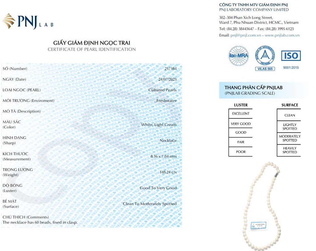 - Mã kiểm định: PNJ 217184