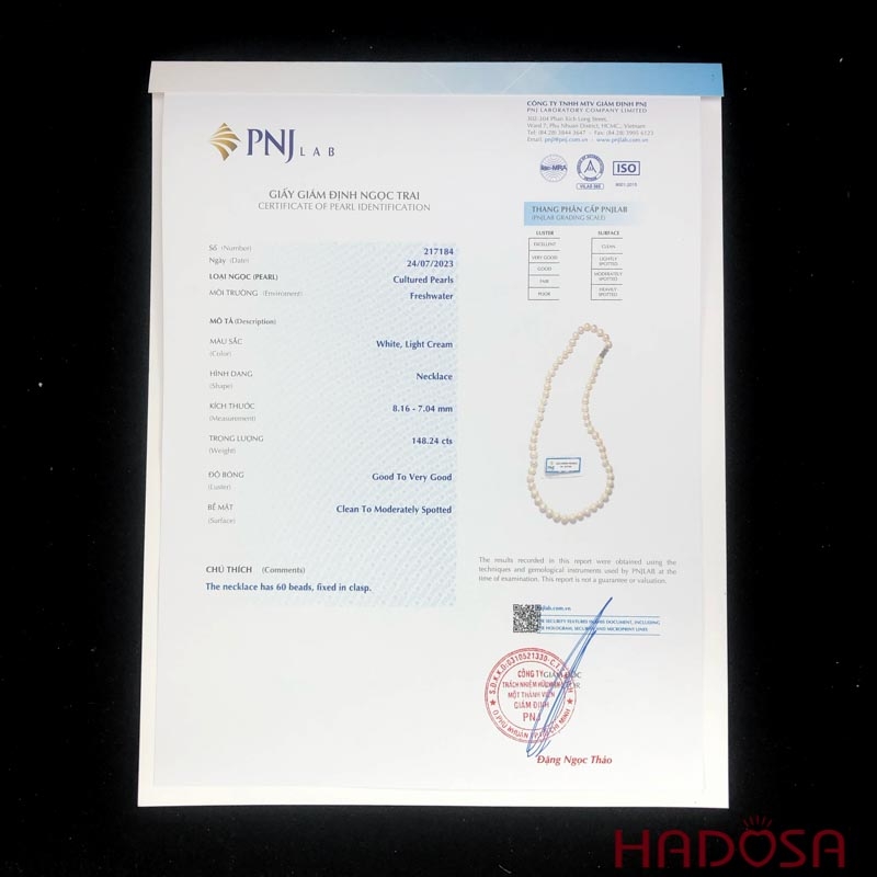 Các sản phẩm đá quý, đá phong thuỷ, bạc Thái của Hadosa đều có nguồn gốc xuất xứ rõ ràng, với giấy giám định từ các trung tâm kiểm định đá quý uy tín như PNJ, LIULAB, DOJI. Cam kết hoàn tiền gấp 10 lần nếu bán hàng không đúng như miêu tả.