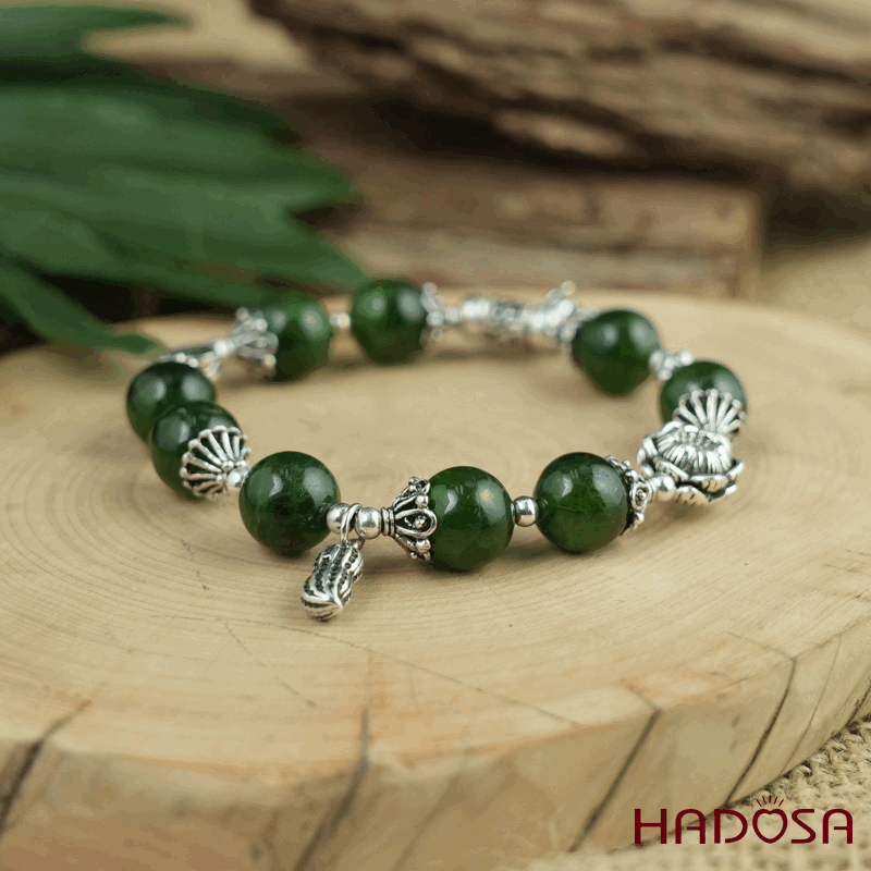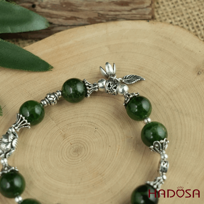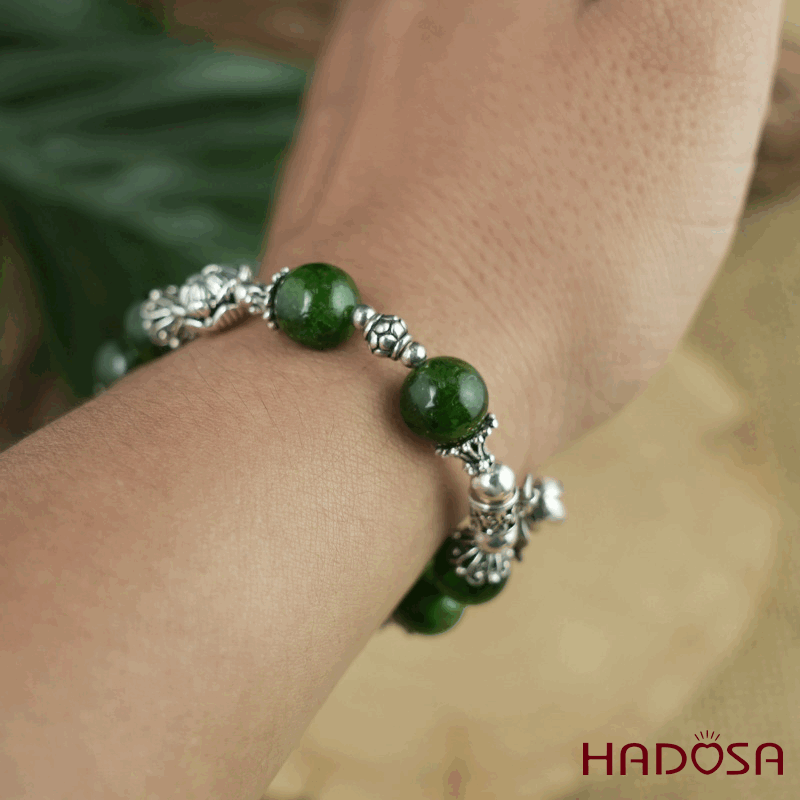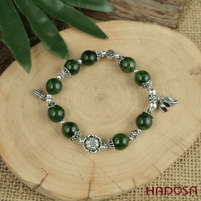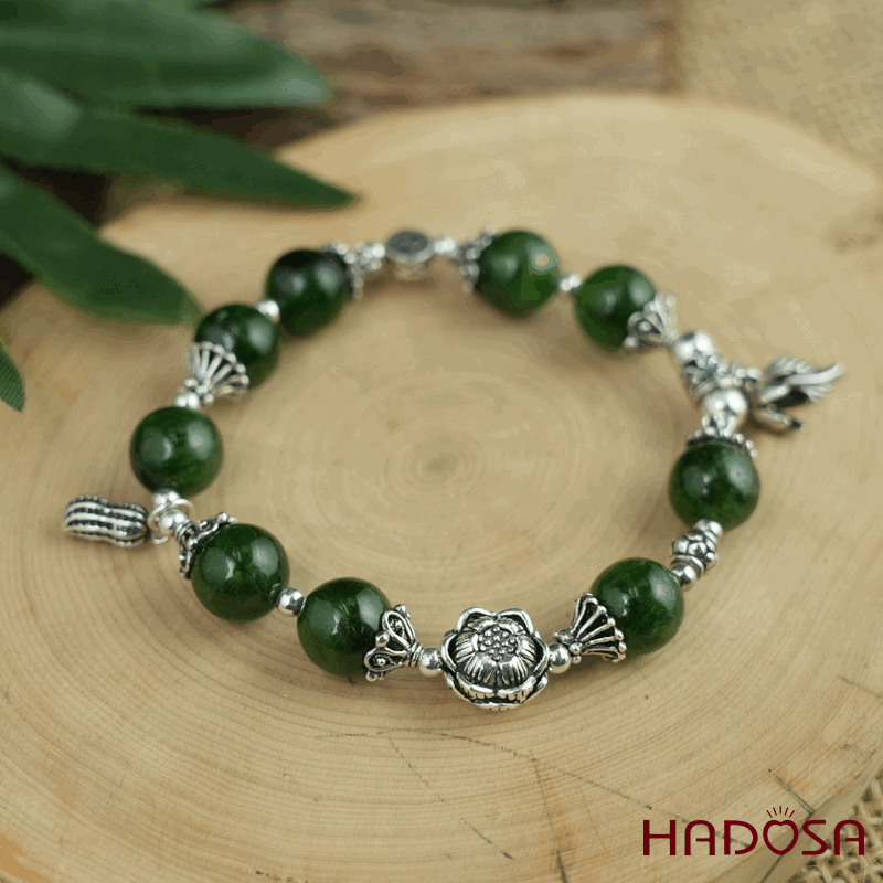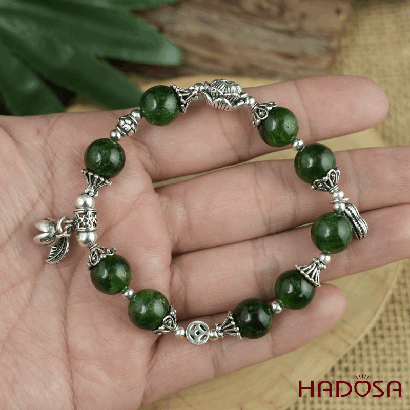 - Chất liệu: Đá Diopside tự nhiên mix charm bạc 925