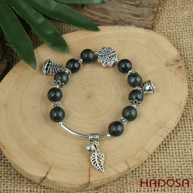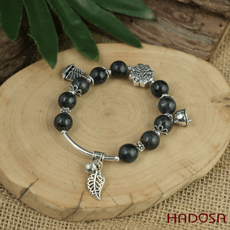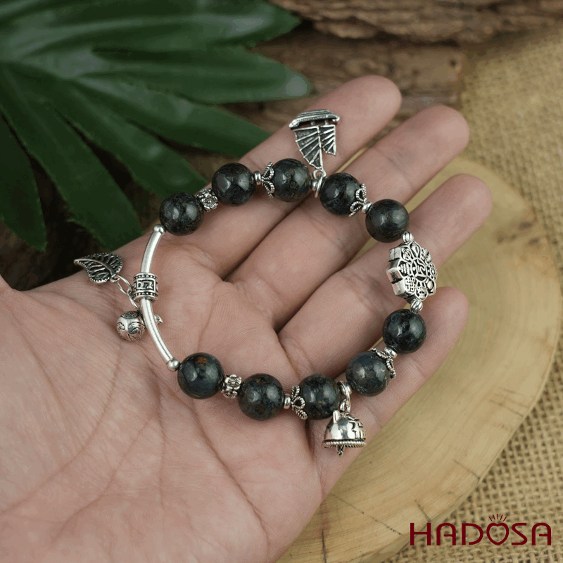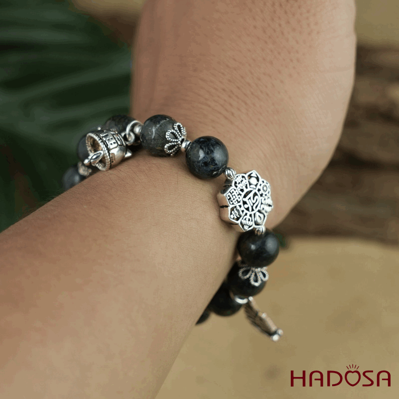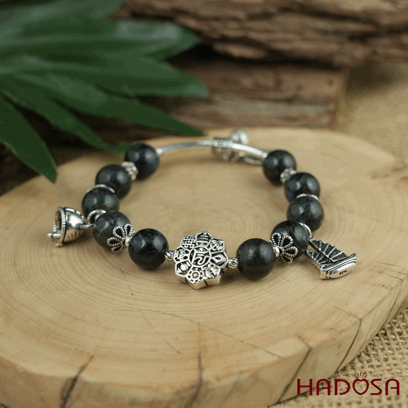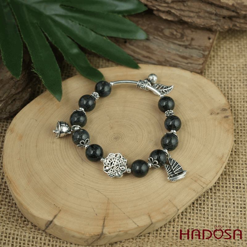 - Chất liệu: Đá Giông Bão tự nhiên mix charm bạc 925