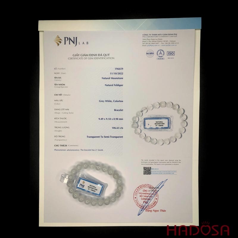 Các sản phẩm đá quý, đá phong thuỷ, bạc Thái của Hadosa đều có nguồn gốc xuất xứ rõ ràng, với giấy giám định từ các trung tâm kiểm định đá quý uy tín như PNJ, LIULAB, DOJI. Cam kết hoàn tiền gấp 10 lần nếu bán hàng không đúng như miêu tả.