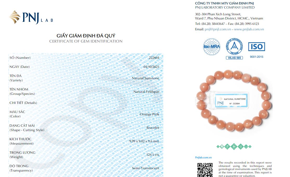 - Mã kiểm định: PNJ 222604