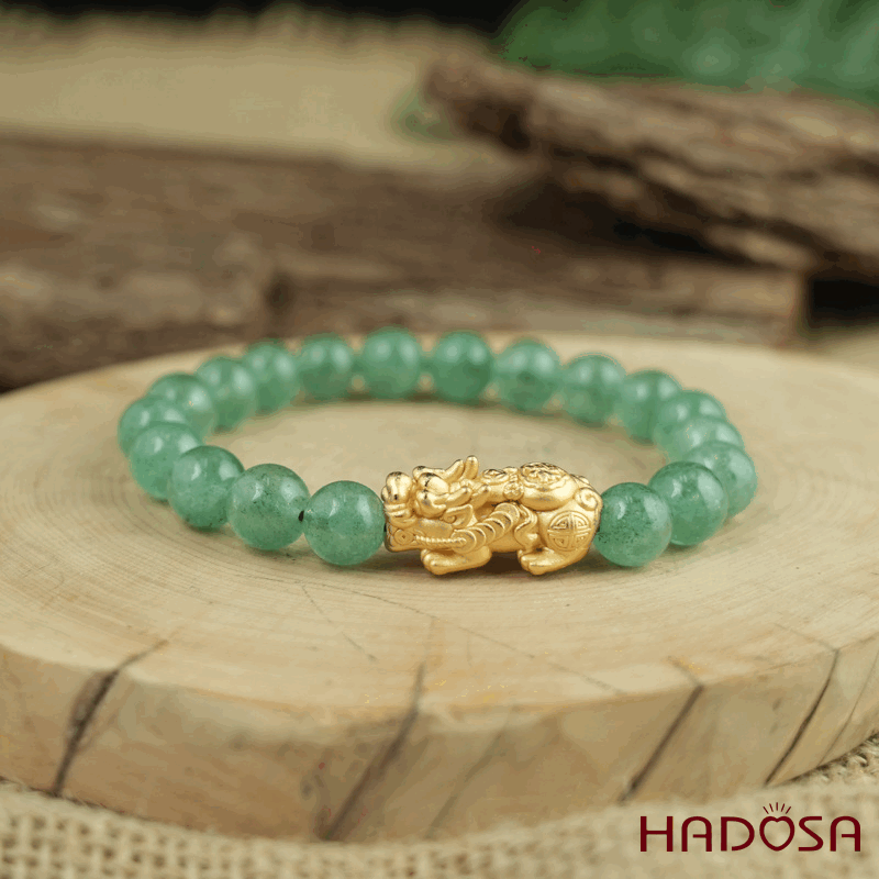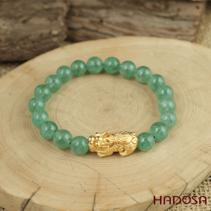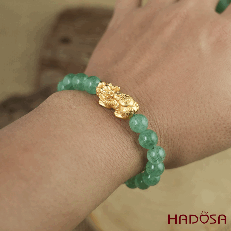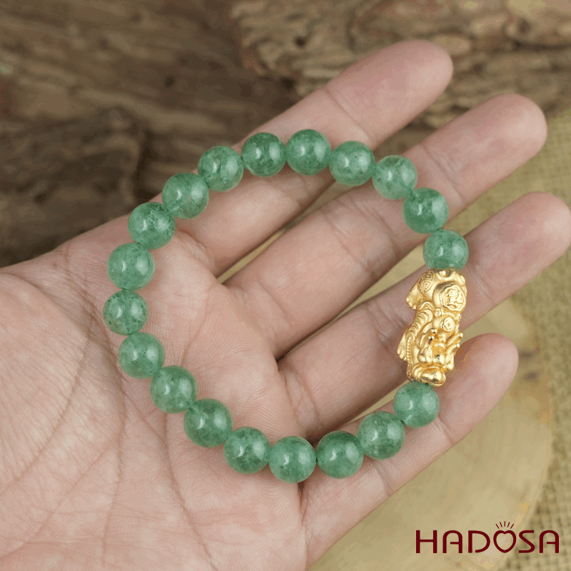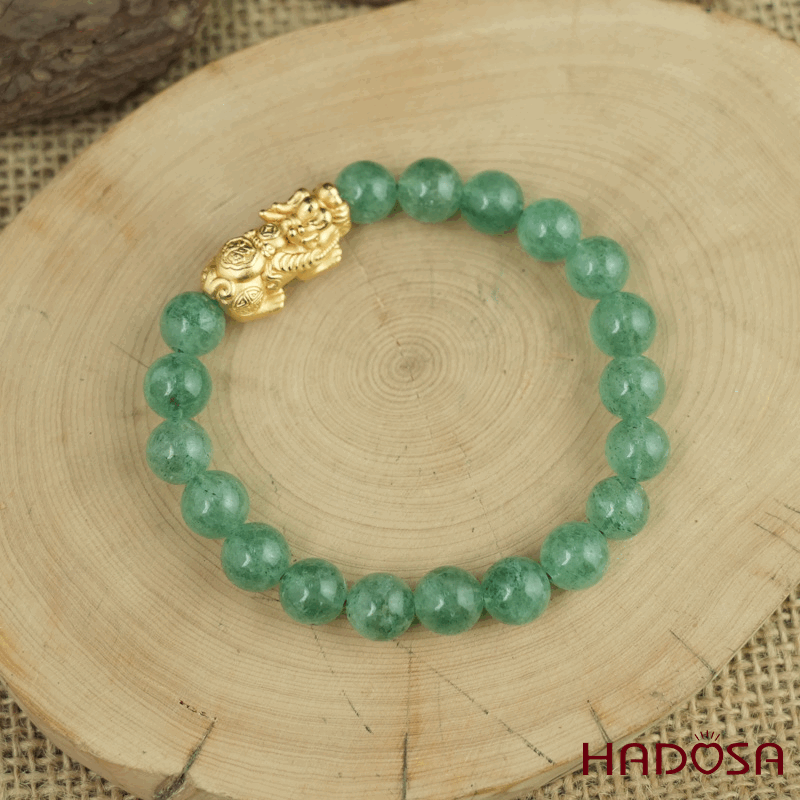 Vòng đá Thạch anh dâu tây xanh 8mm chuẩn 6A mix tỳ hưu bạc mạ vàng