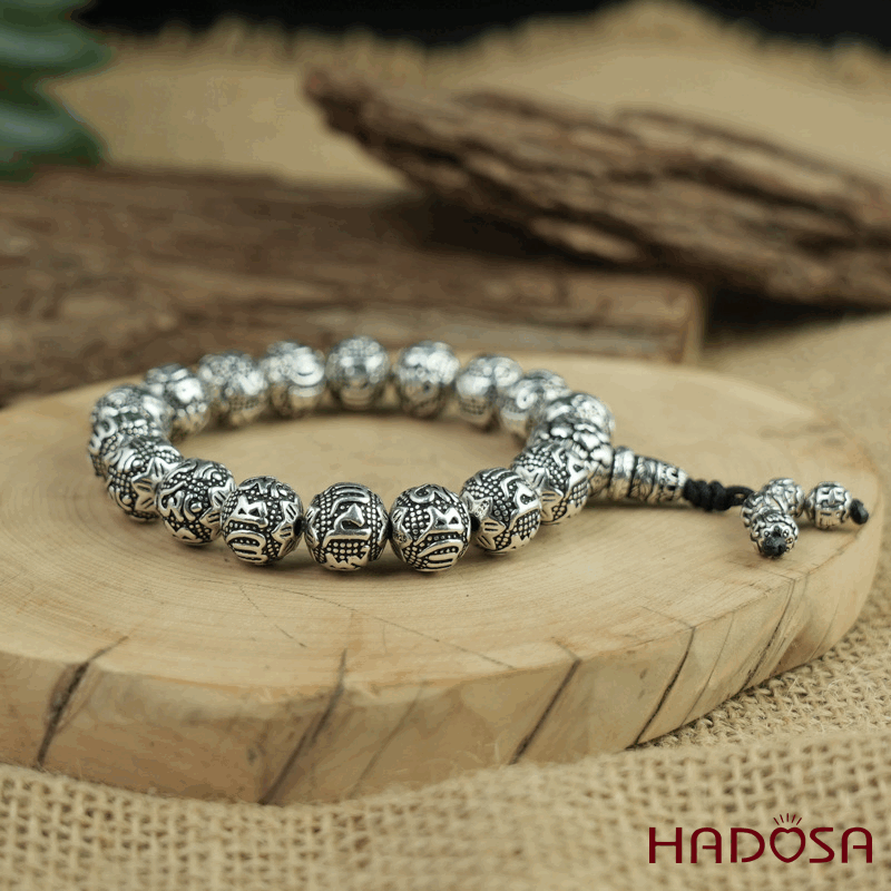 - Kiểu dáng: Vòng hạt tròn bạc Thái