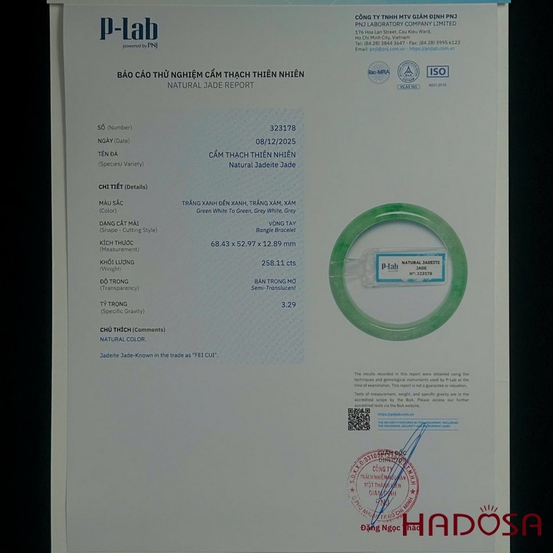 Vòng Ngọc Cẩm Thạch Bản Hẹ Xanh Đậu Ni 52 | HADOSA