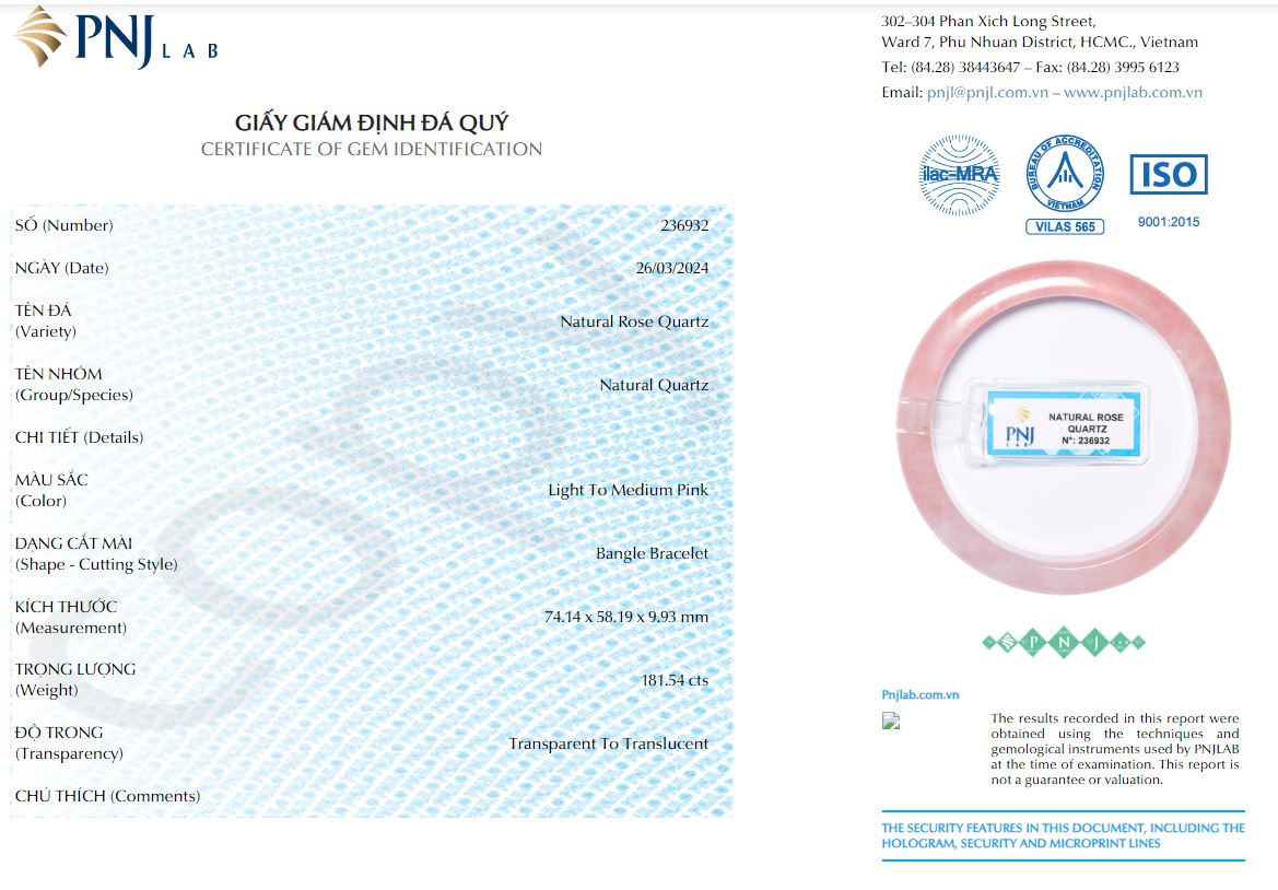 - Tiêu chuẩn chất lượng: hàng cao cấp đã được kiểm định bởi trung tâm giám định đá quý PNJ.