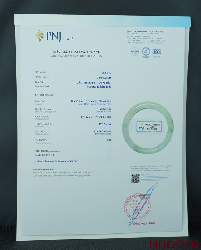 Các sản phẩm đá quý, đá phong thuỷ, bạc Thái của Hadosa đều có nguồn gốc xuất xứ rõ ràng, với giấy giám định từ các trung tâm kiểm định đá quý uy tín như PNJ, LIULAB, DOJI. Cam kết hoàn tiền gấp 10 lần nếu bán hàng không đúng như miêu tả.
