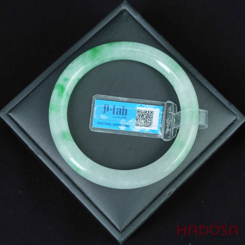 Vòng Ngọc Cẩm Thạch bản tròn xanh trong vân đậu ni 56