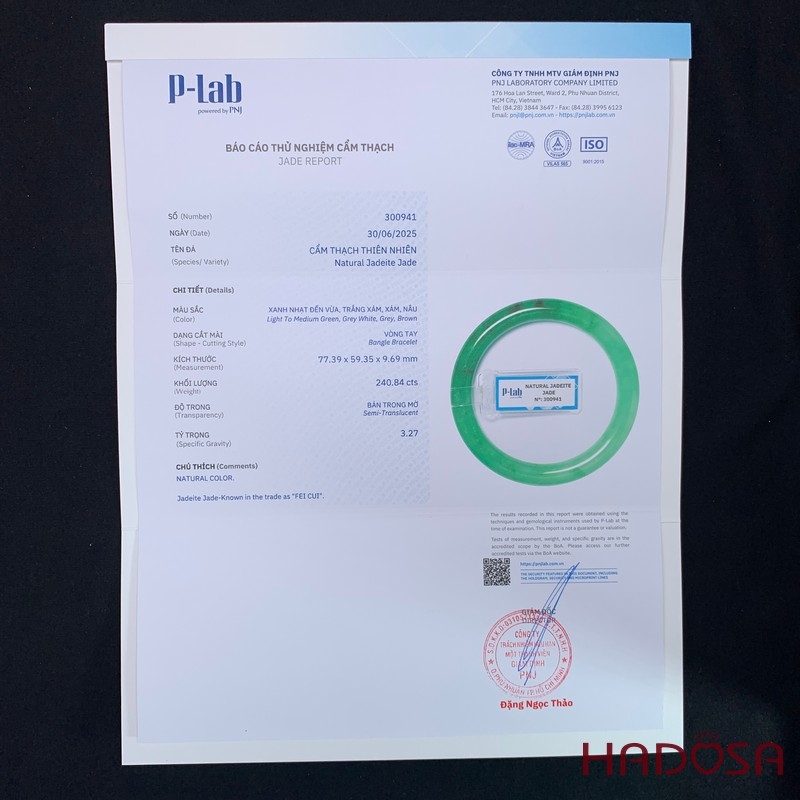 - Chất lượng đảm bảo đã được kiểm định bởi trung tâm giám định đá quý, mã số PNJ 300941