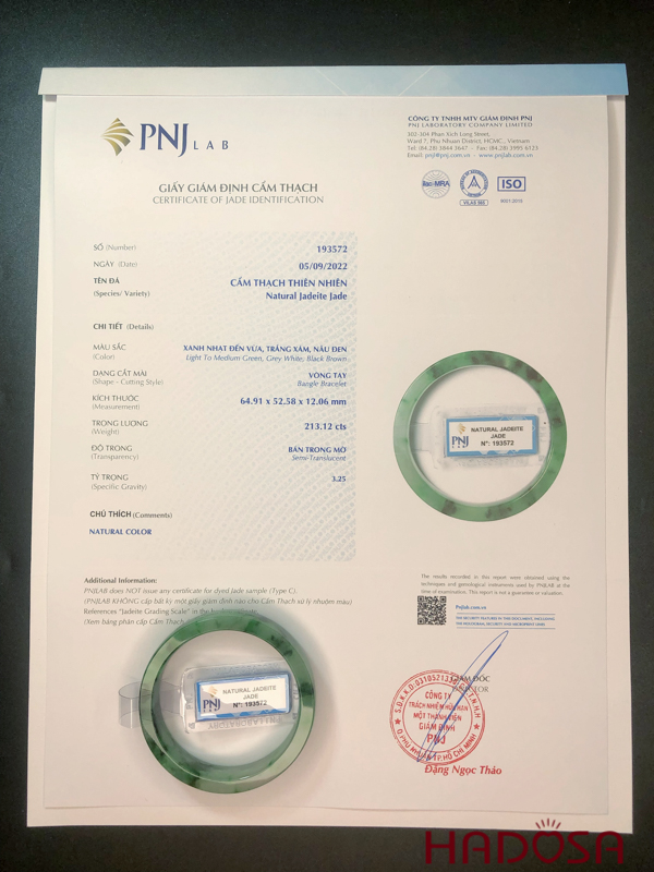 Vòng Ngọc Cẩm Thạch đã được kiểm định tại PNJ.