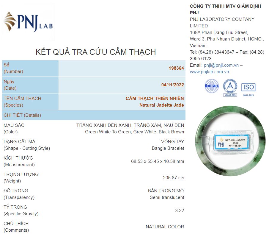 Vòng Ngọc Cẩm Thạch đã được kiểm định tại PNJ.