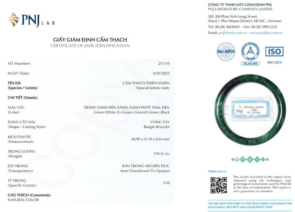 Vòng Ngọc Cẩm Thạch đã được kiểm định tại PNJ.
