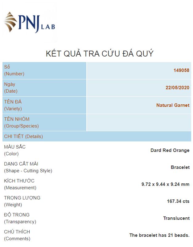 - Chất liệu: Ngọc Hồng Lựu - Garnet tự nhiên.