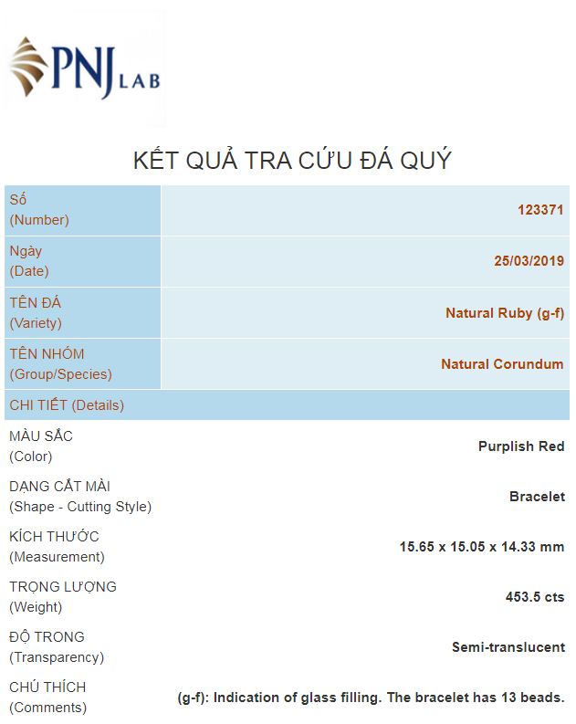 - Mã kiểm định: PNJ 123371