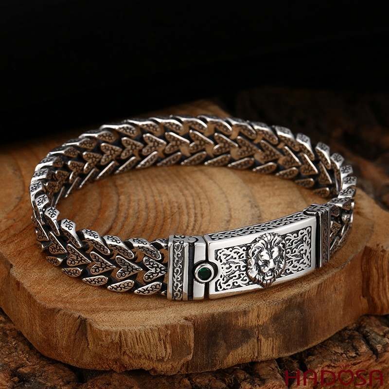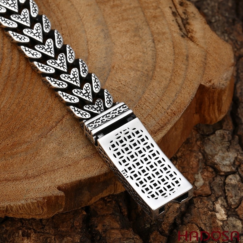 Vòng Tay Nam Bạc Thái Xương Rồng Bản Rộng 13mm – Hadosa