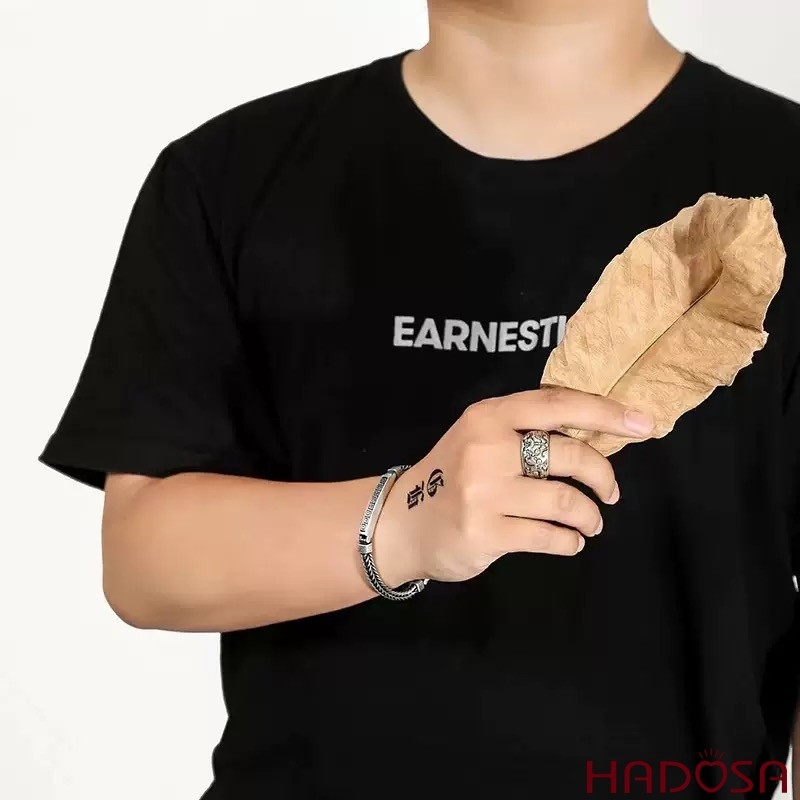 Kiểu dáng: Dây đan kép, bản hình trụ, khắc chữ sâu tinh xảo