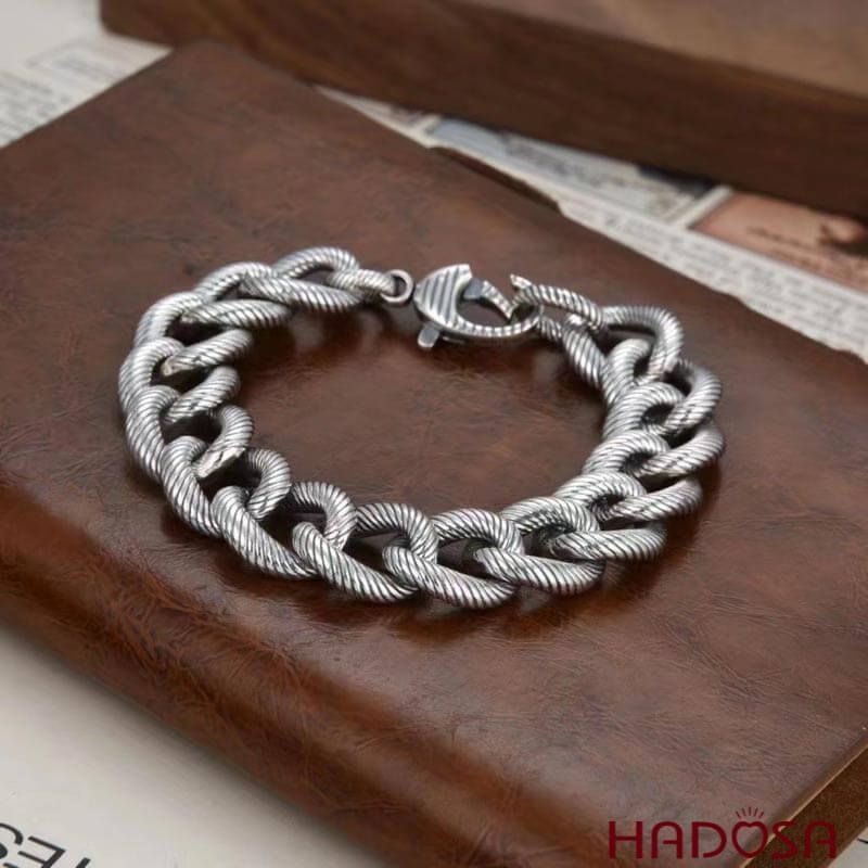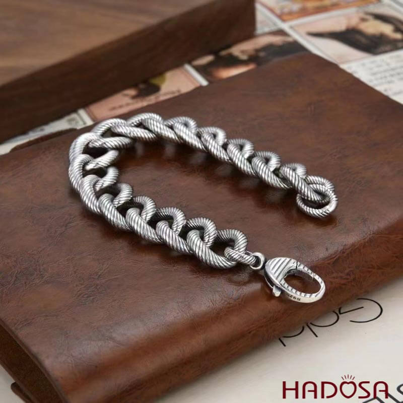 - Các sản phẩm lắc tay bạc nam của Hadosa được xử lý bởi công nghệ oxy hóa cao tạo nên màu đen xen kẽ với màu trắng của bạc và được kiểm soát trong suốt quá trình oxy hoá nên nó rất bền, không bị phai màu theo thời gian bạn sử dụng.