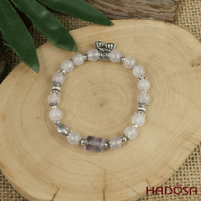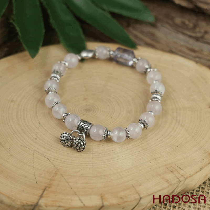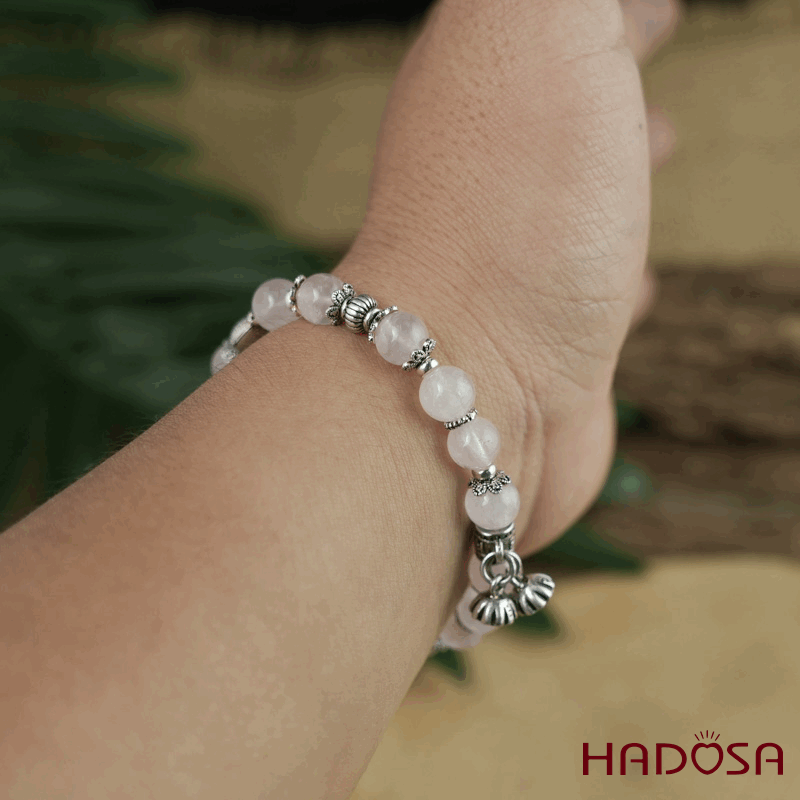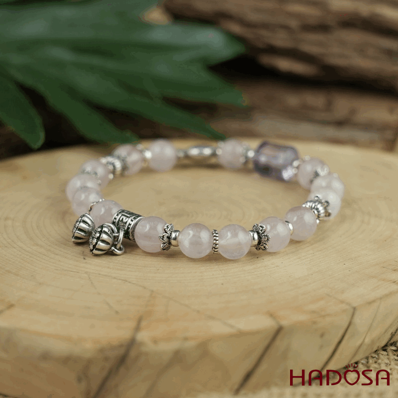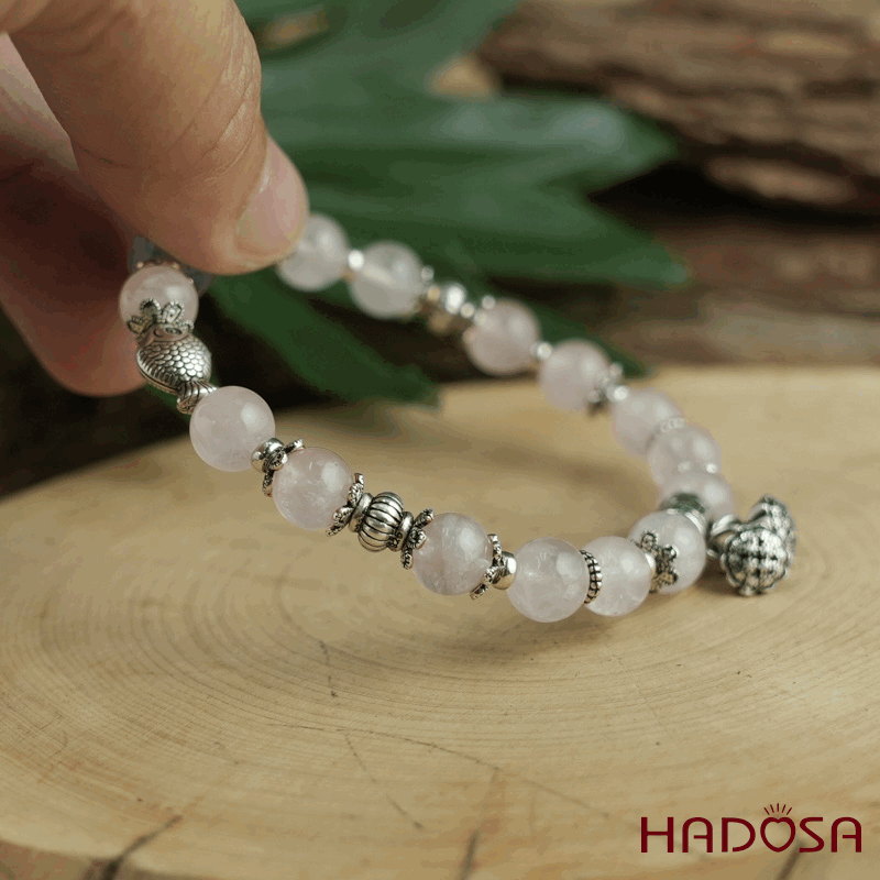 - Chất liệu: Đá Thạch Anh Hồng mix charm bạc 925