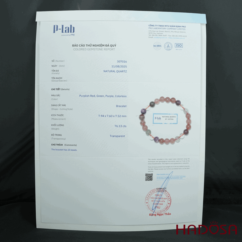 Các sản phẩm đá quý, đá phong thuỷ, bạc Thái của Hadosa đều có nguồn gốc xuất xứ rõ ràng, với giấy giám định từ các trung tâm kiểm định đá quý uy tín như PNJ, LIULAB, DOJI. Cam kết hoàn tiền gấp 10 lần nếu bán hàng không đúng như miêu tả.