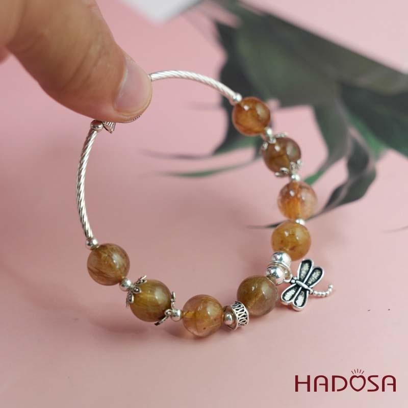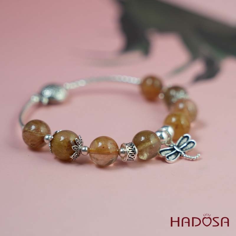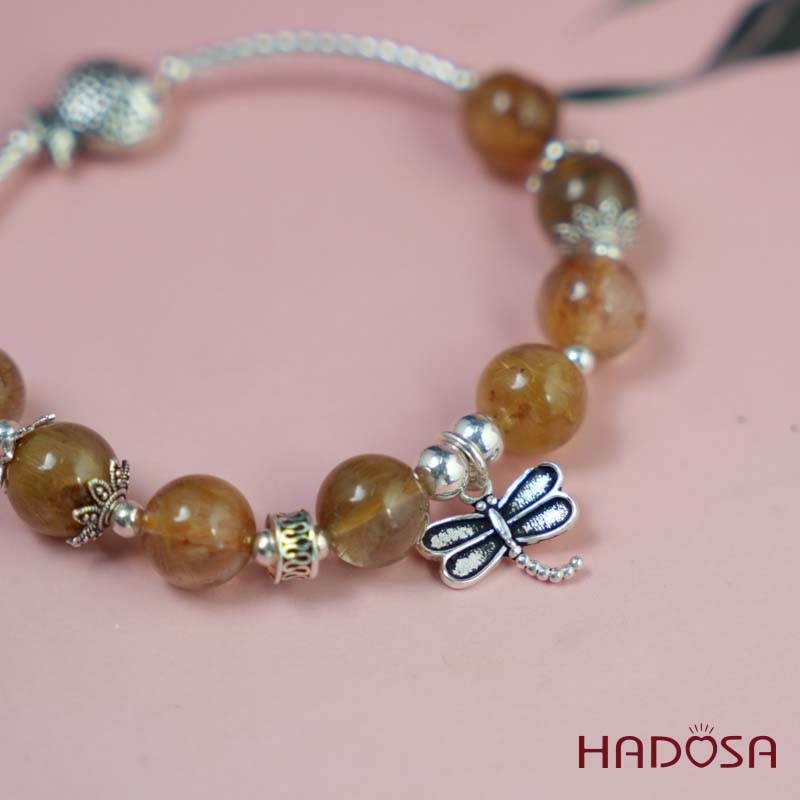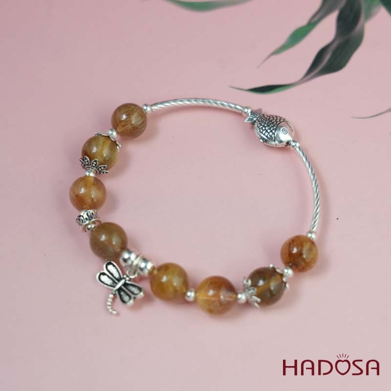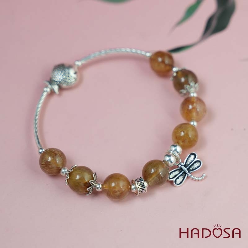 - Chất liệu: Đá Thạch anh tóc vàng tự nhiên mix charm bạc 925
