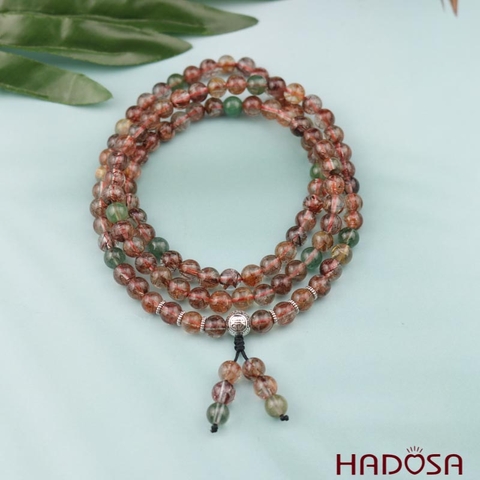 Tràng 108 hạt Thạch anh dâu xanh 8mm (Mộc, Hoả)