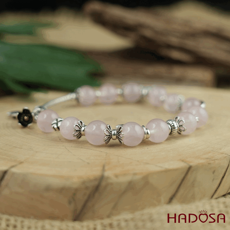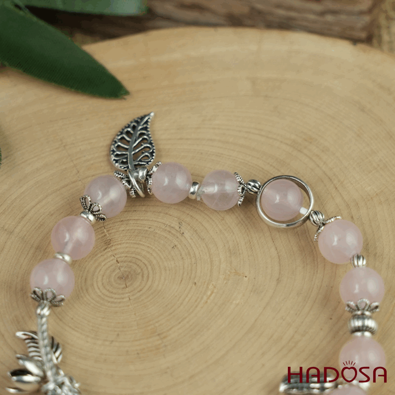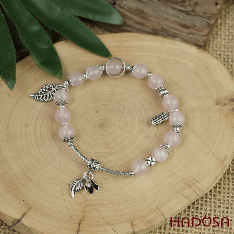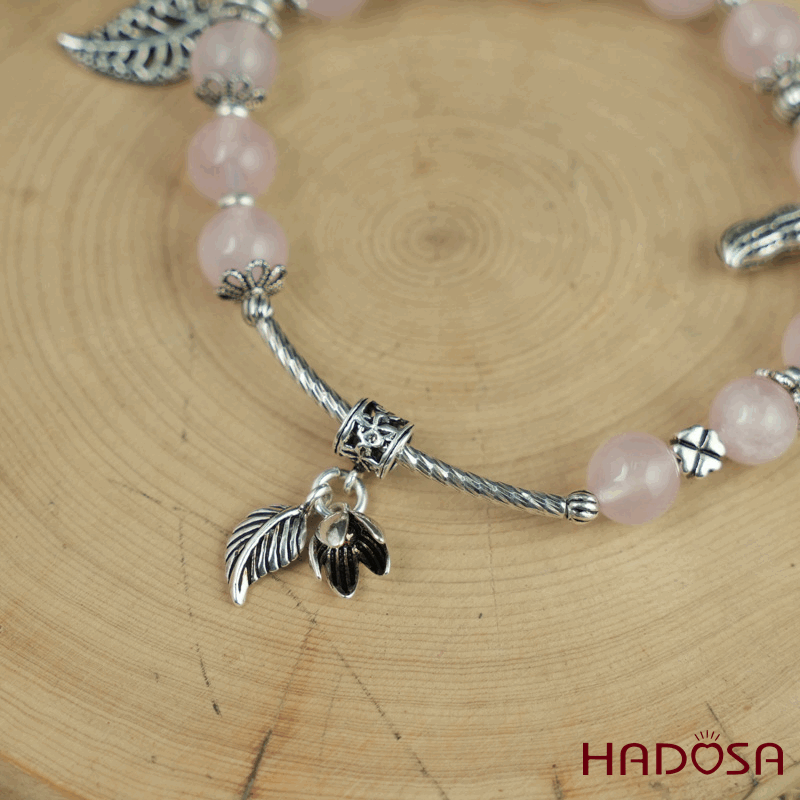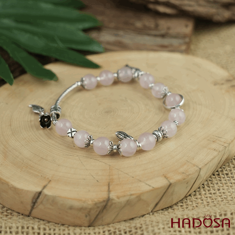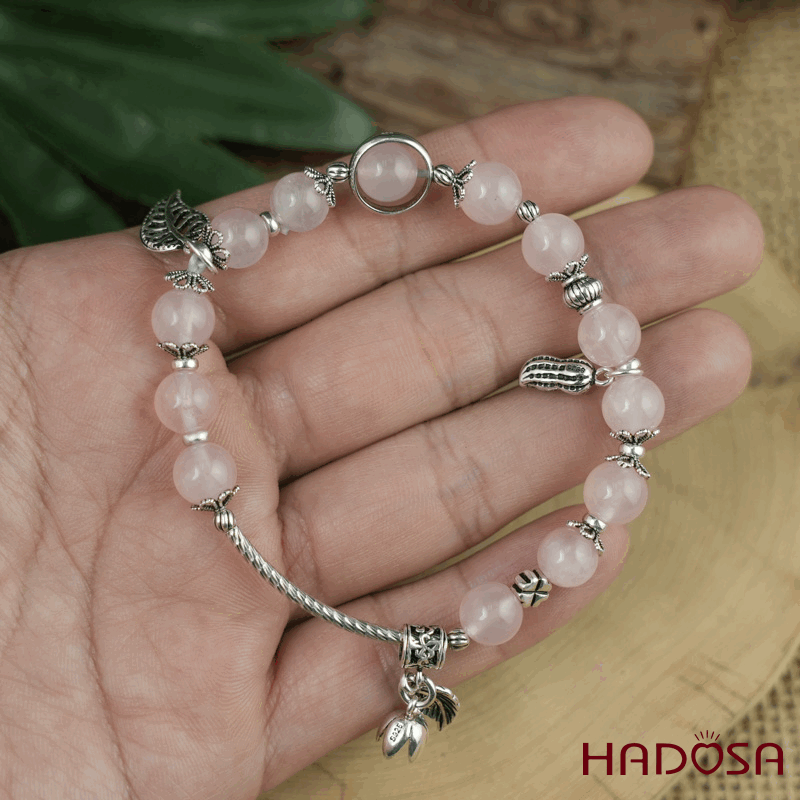 - Chất liệu: Đá Thạch Anh Hồng mix charm bạc 925