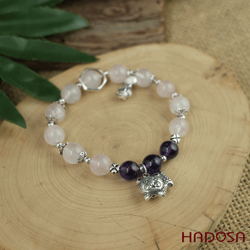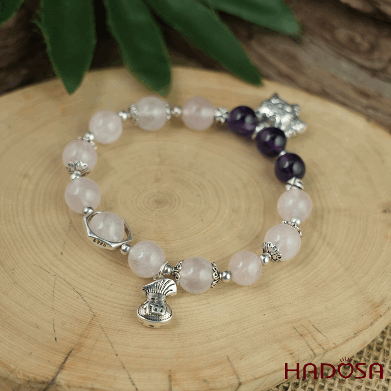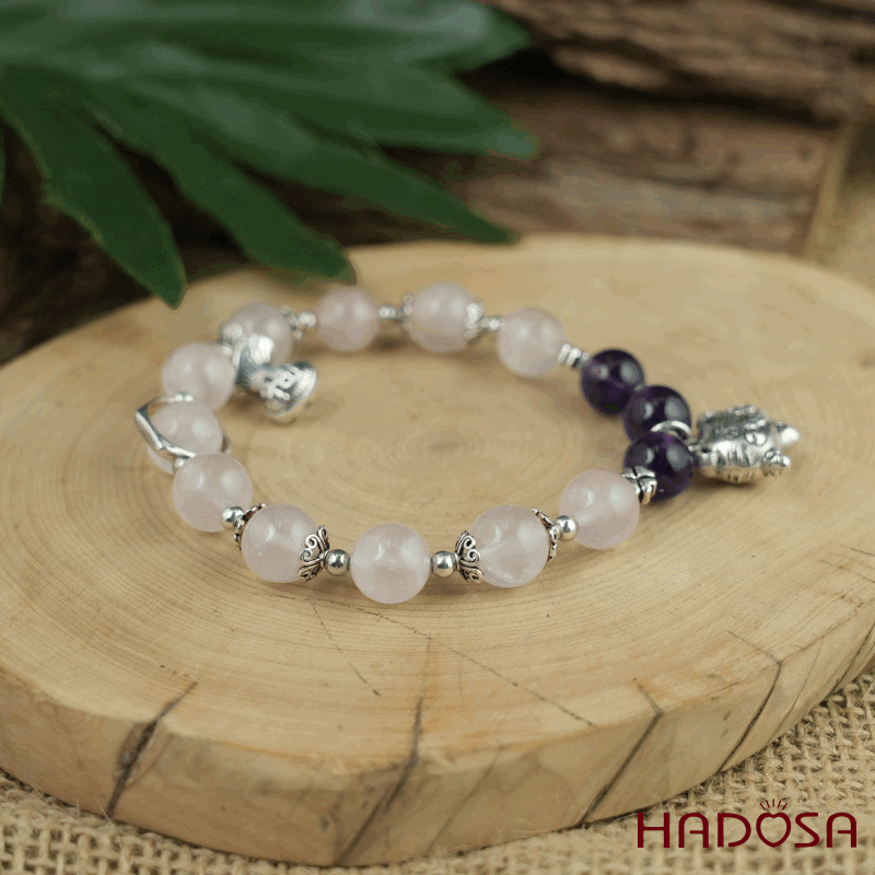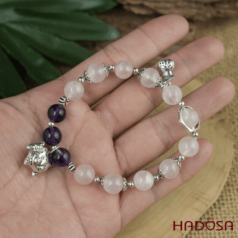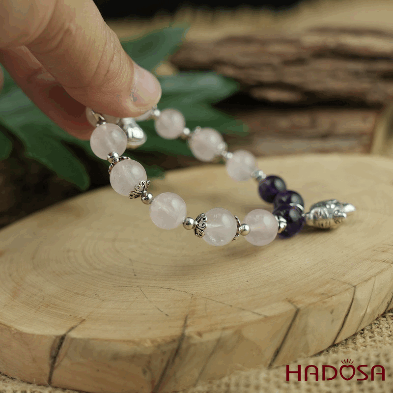 Vòng Thạch Anh Hồng 8mm mix charm bạc 925 (Hỏa, Thổ)