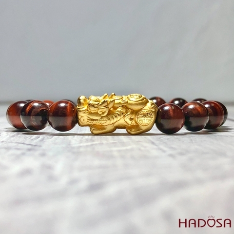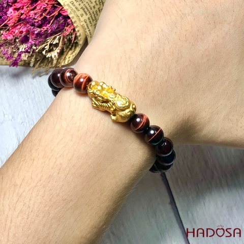 Vòng Thạch Anh Mắt Hổ nâu đỏ 8mm mix tỳ hưu bạc