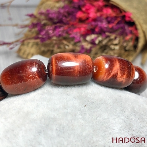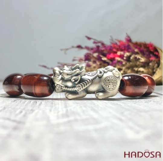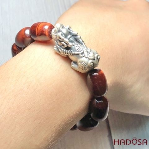 Vòng Thạch Anh Mắt Hổ nâu đỏ hạt trụ mix tỳ hưu bạc 925