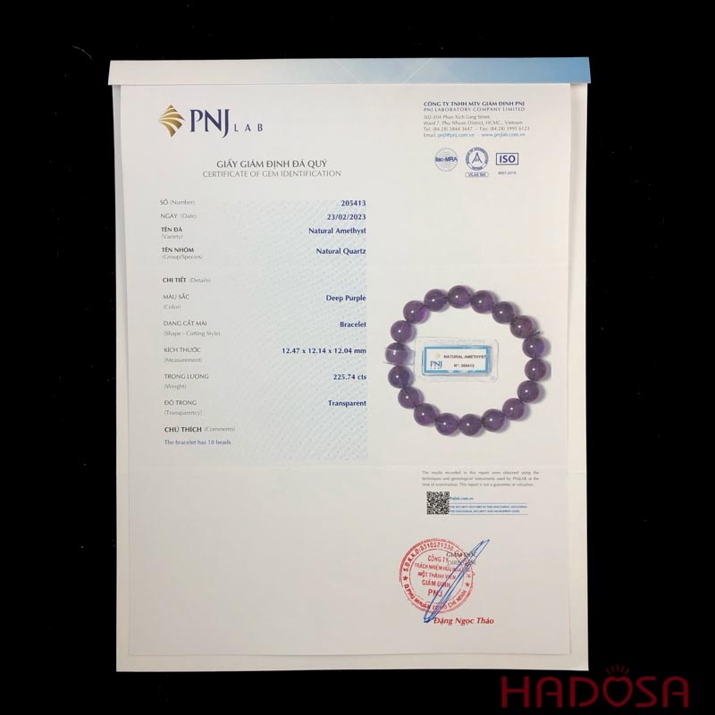 Các sản phẩm đá quý, đá phong thuỷ, bạc Thái của Hadosa đều có nguồn gốc xuất xứ rõ ràng, với giấy giám định từ các trung tâm kiểm định đá quý uy tín như PNJ, LIULAB, DOJI. Cam kết hoàn tiền gấp 10 lần nếu bán hàng không đúng như miêu tả.