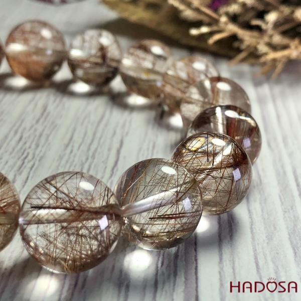 Vòng đá Thạch anh tóc nâu đỏ 14mm cao cấp chuẩn 5A(-)