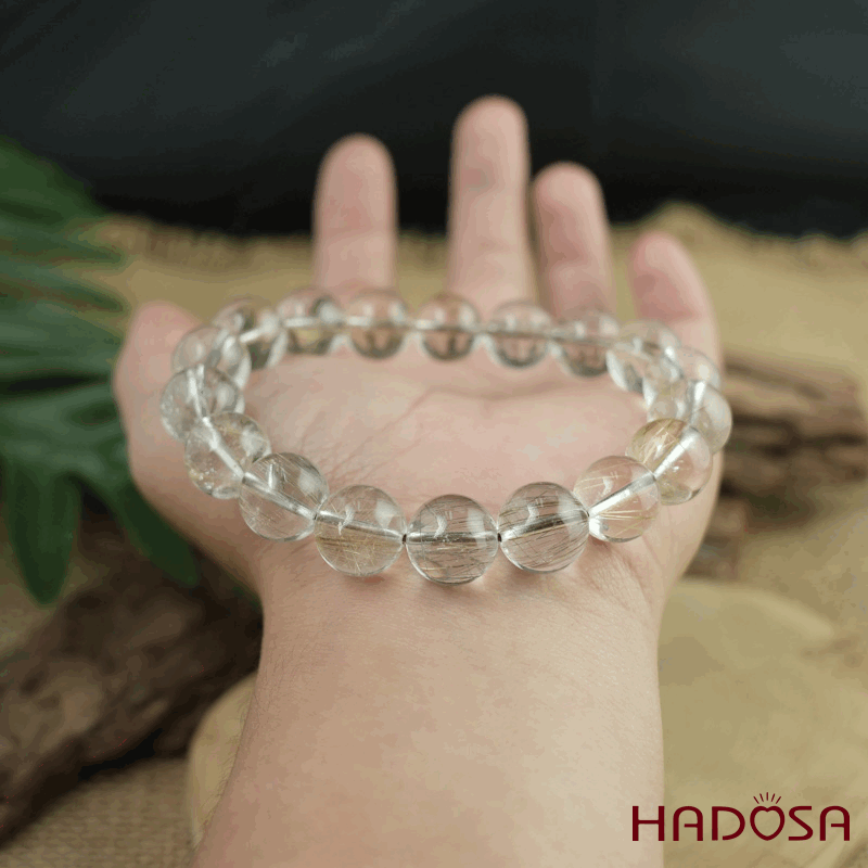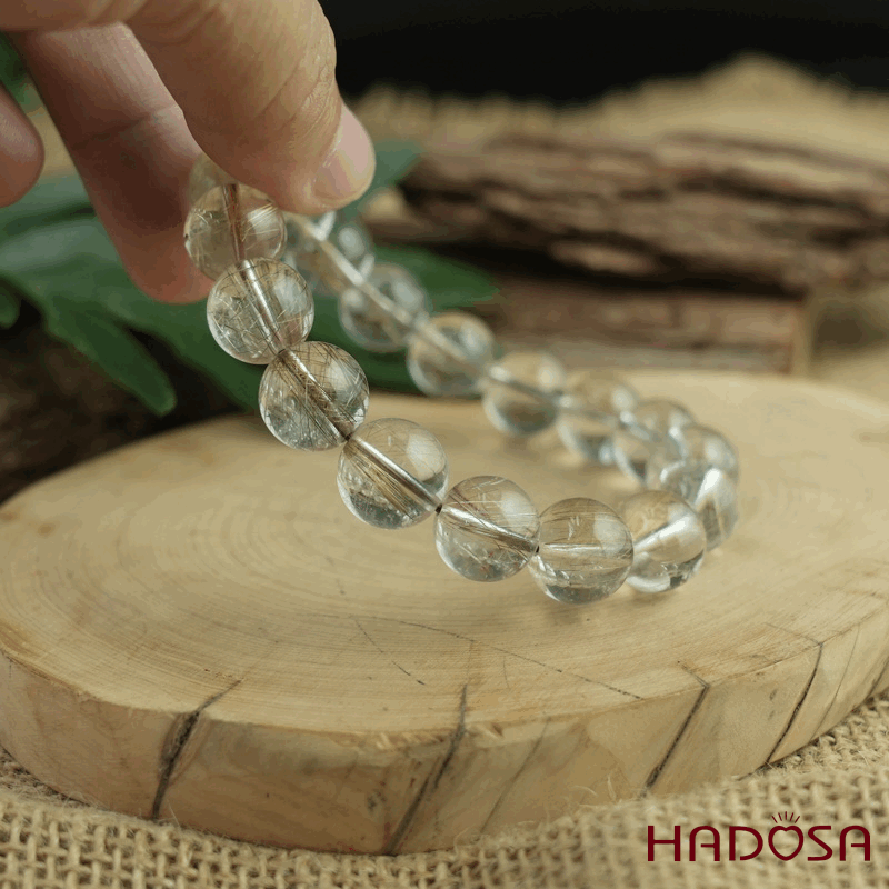 - Chất liệu: Đá Thạch Anh Tóc Trắng tự nhiên.