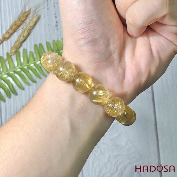 Vòng chuỗi tay Thạch Anh tóc vàng 13mm cao cấp chuẩn 7A | HADOSA